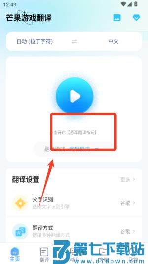 1、打开芒果游戏翻译,进入游戏后调出悬浮按钮,将其拖动到需要翻译的文字区域附近。