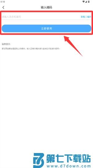 4、填写对应机器编码并确认使用,即可成功开启洗衣服务。