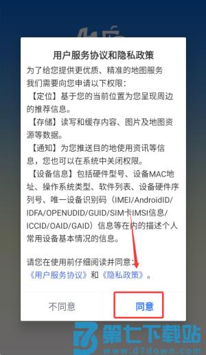 1、确认勾选同意用户协议并点击进入,即可启动应用程序主界面。系统将自动加载定位模块与功能服务导航栏。