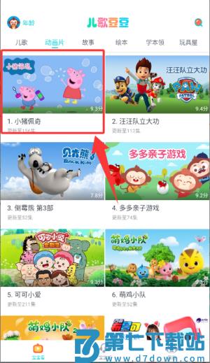 3、在列表中选择目标动画如小猪佩奇进入详情。