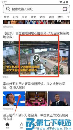 3、切换到视频频道上下滑动观看短视频,在新闻板块可以浏览各类资讯并收藏感兴趣的内容。