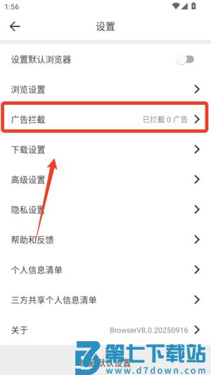 1、打开微米浏览器进入设置界面,开启广告拦截开关,浏览网页时系统会自动过滤弹窗广告。