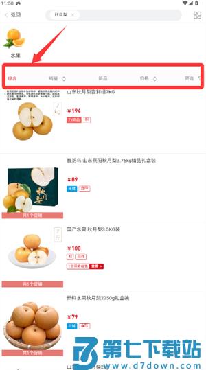 3、输入商品名称后,可按综合、销量或价格等维度筛选结果。