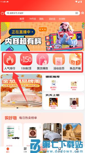 2、主页设有人气排行、热销爆款等入口,方便快速定位商品。