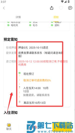 2、进入房源详情页浏览房屋设施与过往房客评价,使用在线聊天功能向房东咨询具体入住规则与周边交通信息。
