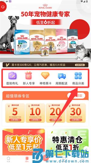 2、首页可见签到有礼、商品分类等入口,点击进入分类页面。