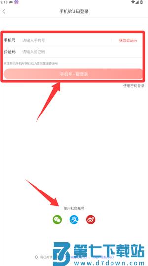 1、启动应用,支持手机验证码或第三方账号快捷登录方式。