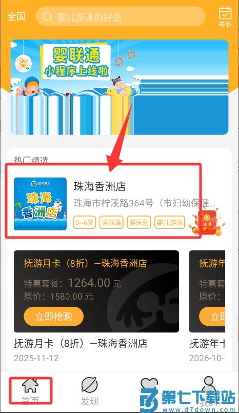 3、于首页选择珠海香洲店,进入门店详情页面。
