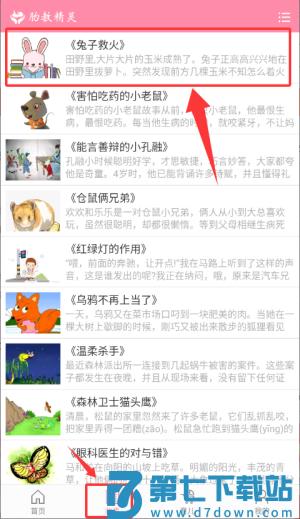 4、进入故事列表选择兔子救火等内容,浏览具体故事详情。