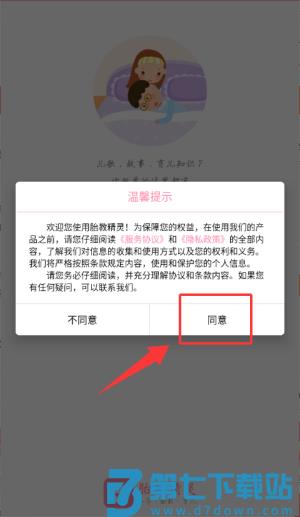 1、启动应用后,在温馨提示窗口点击同意,进入预产期设置页。