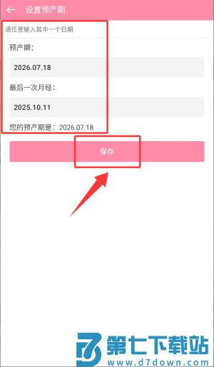 2、输入预产期或末次月经时间,点击保存完成信息录入。