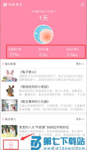 3、返回首页可查看剩余天数及胎儿发育相关数据信息。