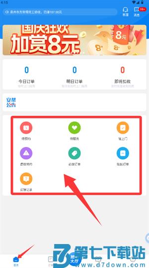 3、登录成功后进入首页,可见待预约、待服务等各类订单功能入口。