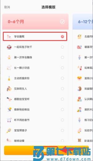 2、挑选成长事件模板如学会腹爬,点击添加。