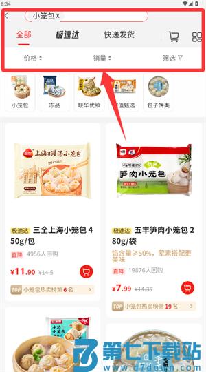 3、在分类页面的搜索栏输入目标商品名称,也可按需设置排序条件。