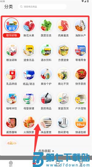 2、返回首页选择底部"分类"栏,浏览并点选感兴趣的商品分类入口。