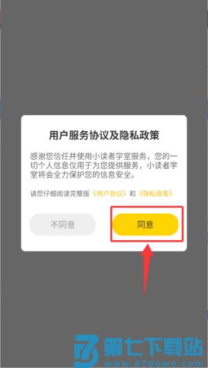 1、首次启动应用,请在用户服务协议弹窗点击同意。