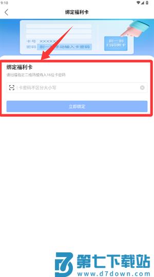 2、如需绑定福利卡,请在绑定页面填写卡密后点击立即绑定。