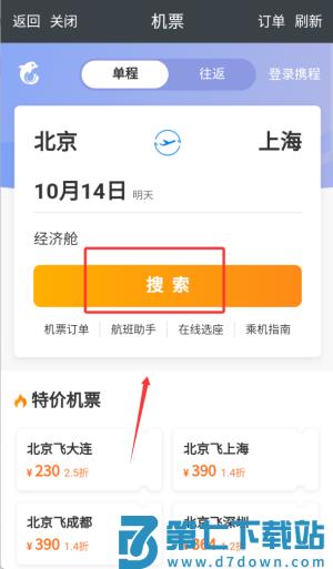 3、进入机票预订模块设置行程信息与乘机时间,查询结果将呈现不同航空公司的航班时刻与价格对比及折扣详情。