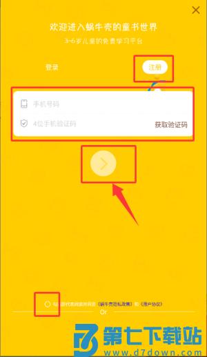 3、注册需输入手机号及验证码并勾选协议。