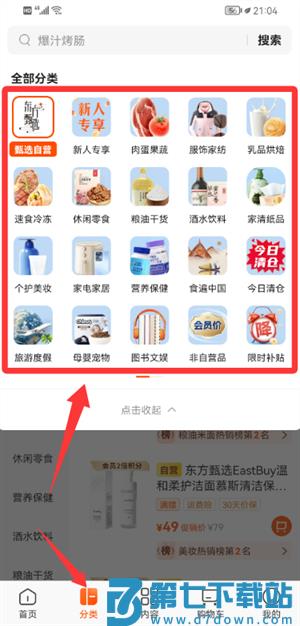 2、进入程序主界面,选择底部分类栏浏览并点选所需商品类别。