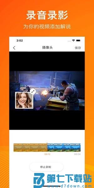 2、点击主界面上的录屏按钮,倒计时结束后就开始录制,你可以一边打游戏一边说话,所有画面和声音都会被完整记录下来。