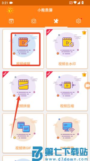 2.启动小熊录屏以后,点击图案为四个方格的菜单项。