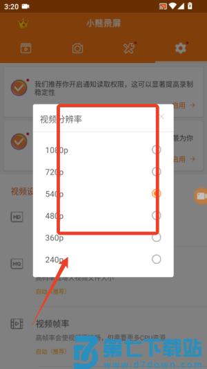 1、打开小熊录屏后进入设置界面,选择你需要的画质,比如1080P和60FPS,再开启声音录制,确保游戏解说或直播内容都能清晰收录。