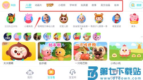 4、增加儿歌故事分类选择,可根据宝宝年龄段选择视听分类,使用更贴心