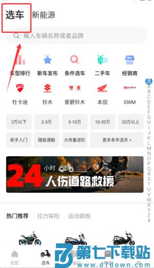 3、在车型挑选页面,可根据排量、品牌及用途等条件筛选摩托车。每款车型均配有详细参数说明及实拍图片参考。