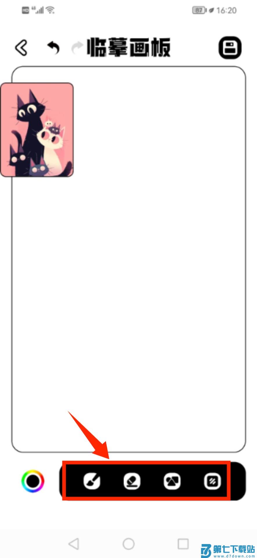 3、确定模板后进入临摹界面,使用底部提供的绘画工具开始创作。