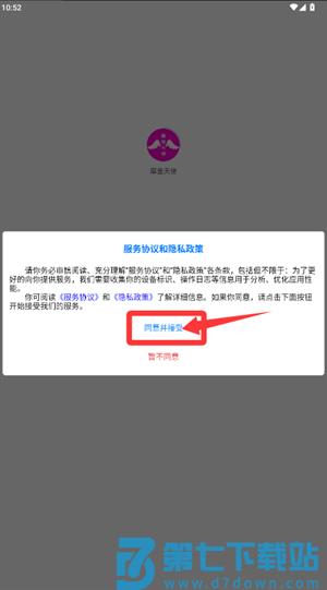 1、启动应用后请仔细阅读用户协议,确认后点击同意并继续。