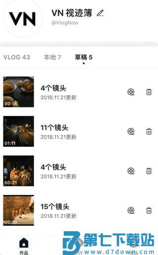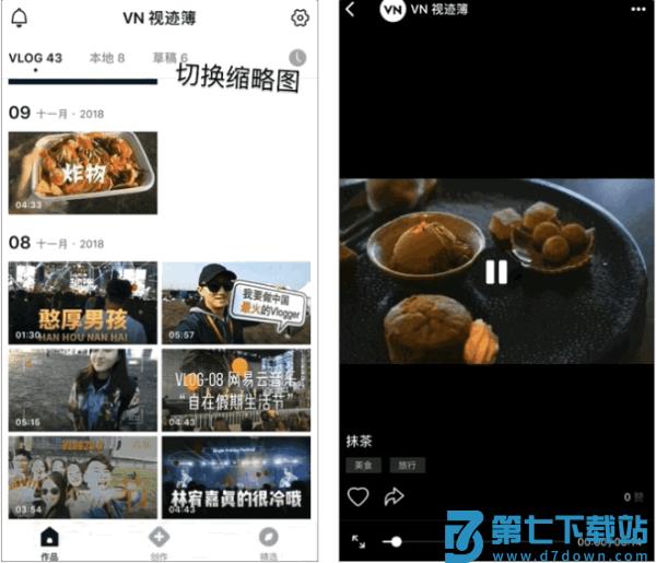 进入【作品】界面,【VLOG】栏里,就是你发布到 VN 上的所有作品。作品自动已发布时间顺序陈列,点击右侧按钮,可切换缩略图模式。