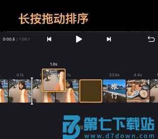 2、长按视频片段,就能前后拖动素材进行排序,很符合直觉的设计。
