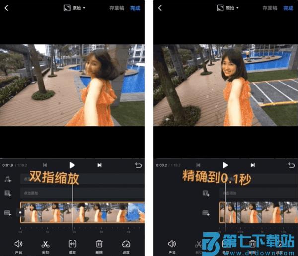 1、双指缩放就能展开或折叠素材。很多手机剪辑App 的最短片段限制是0.5S,但这样得来的画面有时不够精确。在 VN 里,你可以将视频片段无限拆分,最短拆分至0.1S。