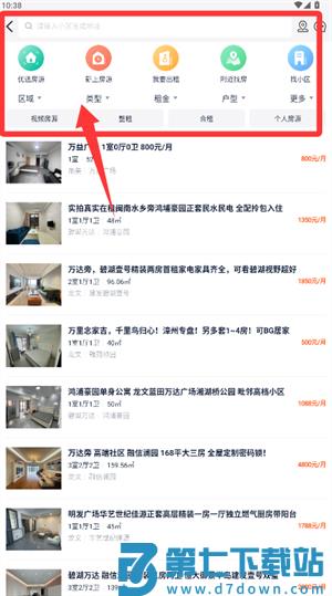 3、在租房页面通过区域、户型等条件筛选或直接搜索目标房源。