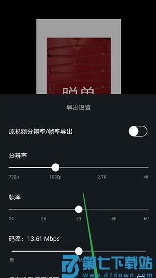 【导出设置】可自定义设置分辨率和帧率,根据2265手机性能差异最高可支持4K分辨率,60帧率导出,保存至本地。