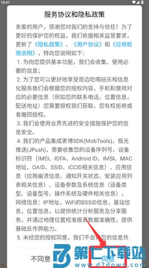 1、启动应用,在服务协议与隐私政策弹窗中点击"同意"。