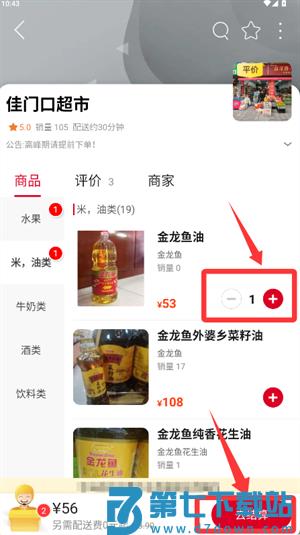 4、进入选定超市挑选商品,填写数量后提交订单完成支付。
