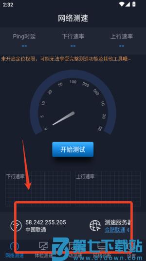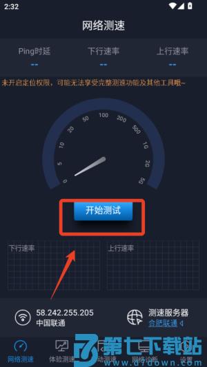 2、点击开始测试按钮,软件会自动检测当前网速。包括下载速度,上传速度和网络延迟等关键指标。