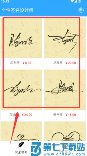 1、打开个性签名设计师app,选择艺术签名功能,输入你的名字并挑选喜欢的字体风格一键生成专属签名。