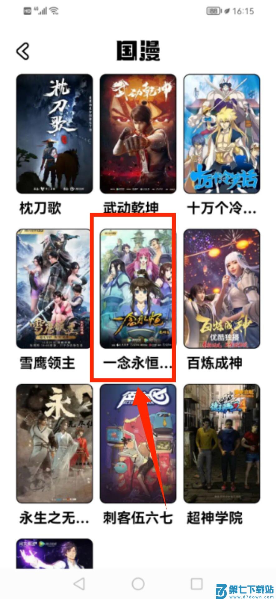 2、在国漫作品陈列区,通过滑动浏览或搜索功能定位“一念永恒”系列作品。