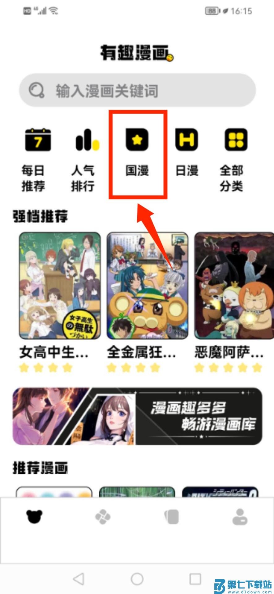 1、启动应用后,在主页导航栏中找到"国漫"专区入口,点击进入分类页面。