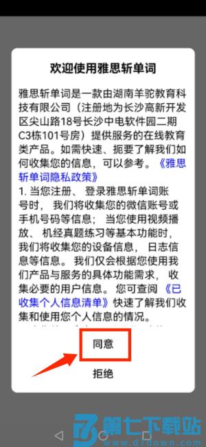 1、首次启动应用,请在欢迎弹窗点击同意进入。