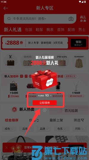 2、进入新人专区后,点击立即领券获取专属优惠福利。