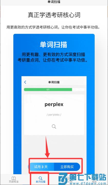 4、通过单词扫描选择试用或购买开启学习。