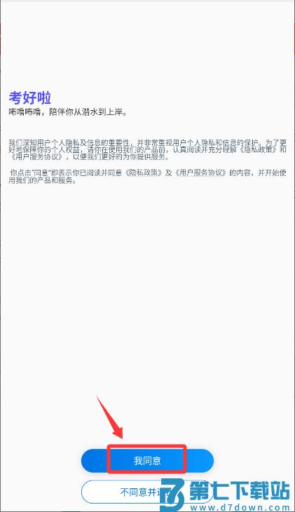 1、首次启动应用,请在隐私政策页面点击我同意进入。