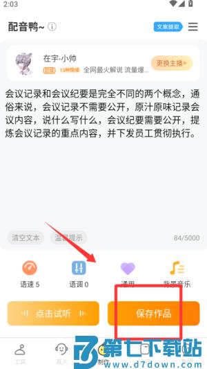 3、调整语速和音量参数时,可先试听预设效果,拖动滑块微调至每分钟200字左右的自然语速。