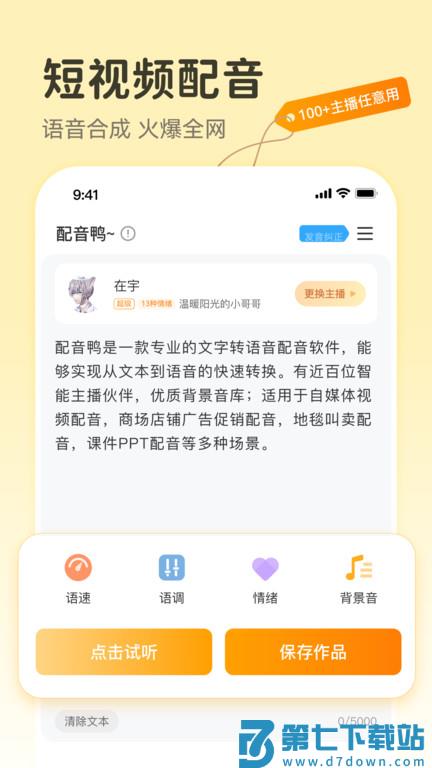 配音鸭文字转语app是一个可以进行语言方面的管理软件,可一键将文字转化成语音,专业2265文字转语音的配音软件,轻松解决配音烦恼,操作简单。