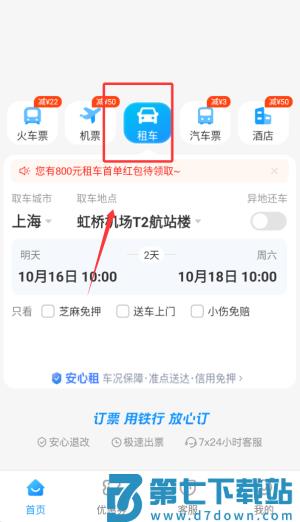 4、进入租车服务界面指定用车城市与时间范围,即可查看不同车型的租赁费用、保险选项与取车地点。